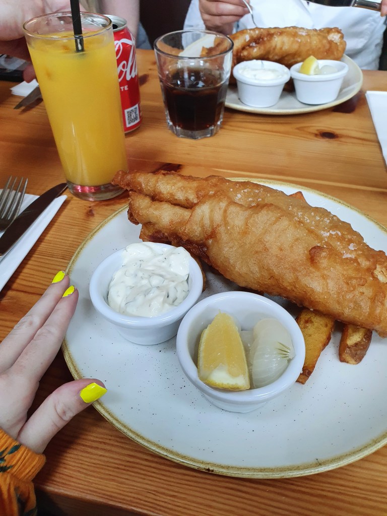 I decided on the traditional fish and chips, as I was by the sea and you cant be by the sea without getting fish and chips! Thinking of it now I maybe should have tried something different from the menu as the choice was so good but simply I was craving a fish. It was delicious and high quality, I also had tons of chips but you cant see in the picture because ethe big fish is on top of them.