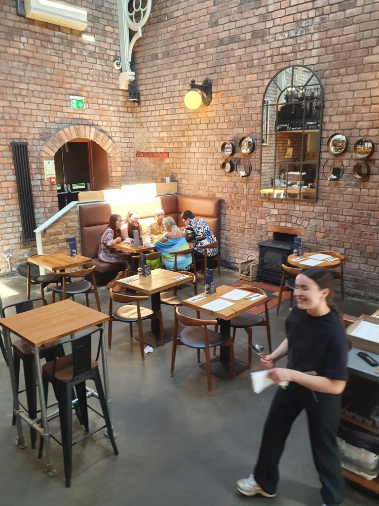 It was a really hot day outside but they had good air conditioning in here which made it a very pleasant experience, the workers were so friendly. The high ceilings and the décor were impressive. I loved the bare brick walls!