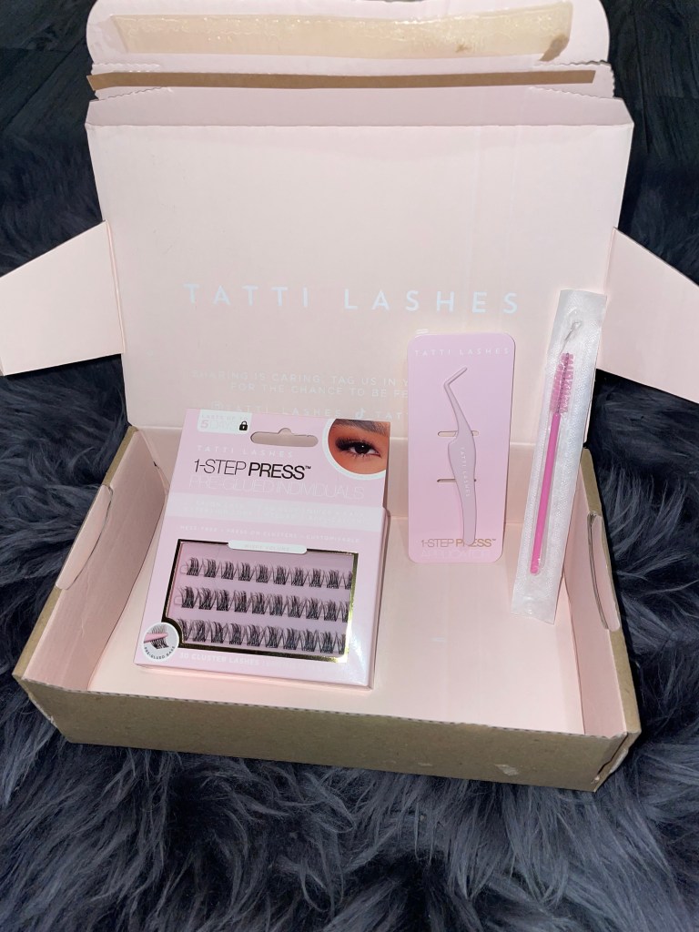 Picked up the tatti lashes pre-glued kit as I had never used pre glued eyelashes before and was curious about all those tik tok vids I saw online showing them being applied so easily. The tatti lashes kits are so cute and most of their products come in lovely pink girly packaging.