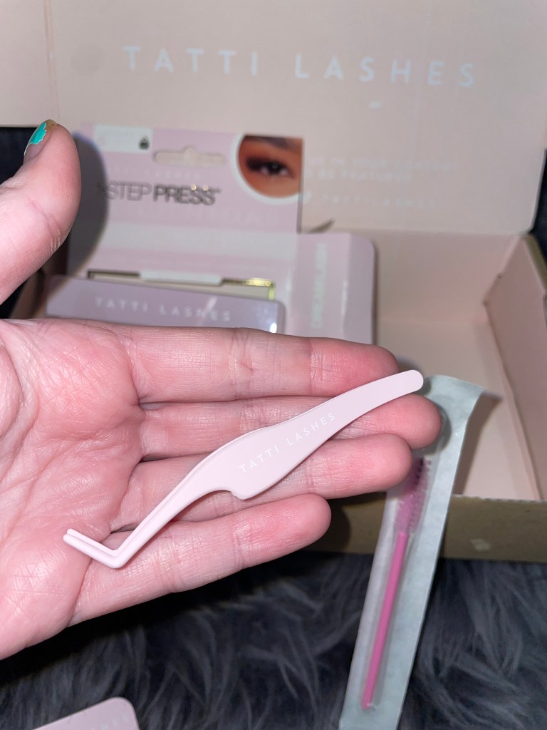 The 1-step press tatti lashes kit comes with a spoolie and eyelash applicator tweezers, alongside your chosen pre-glued eyelashes! There are many different styles and lengths available from tatti lashes in the pre-glued range I choose the wispy volume. You can also get cat eye, hybrid volume, everyday map and lots more.